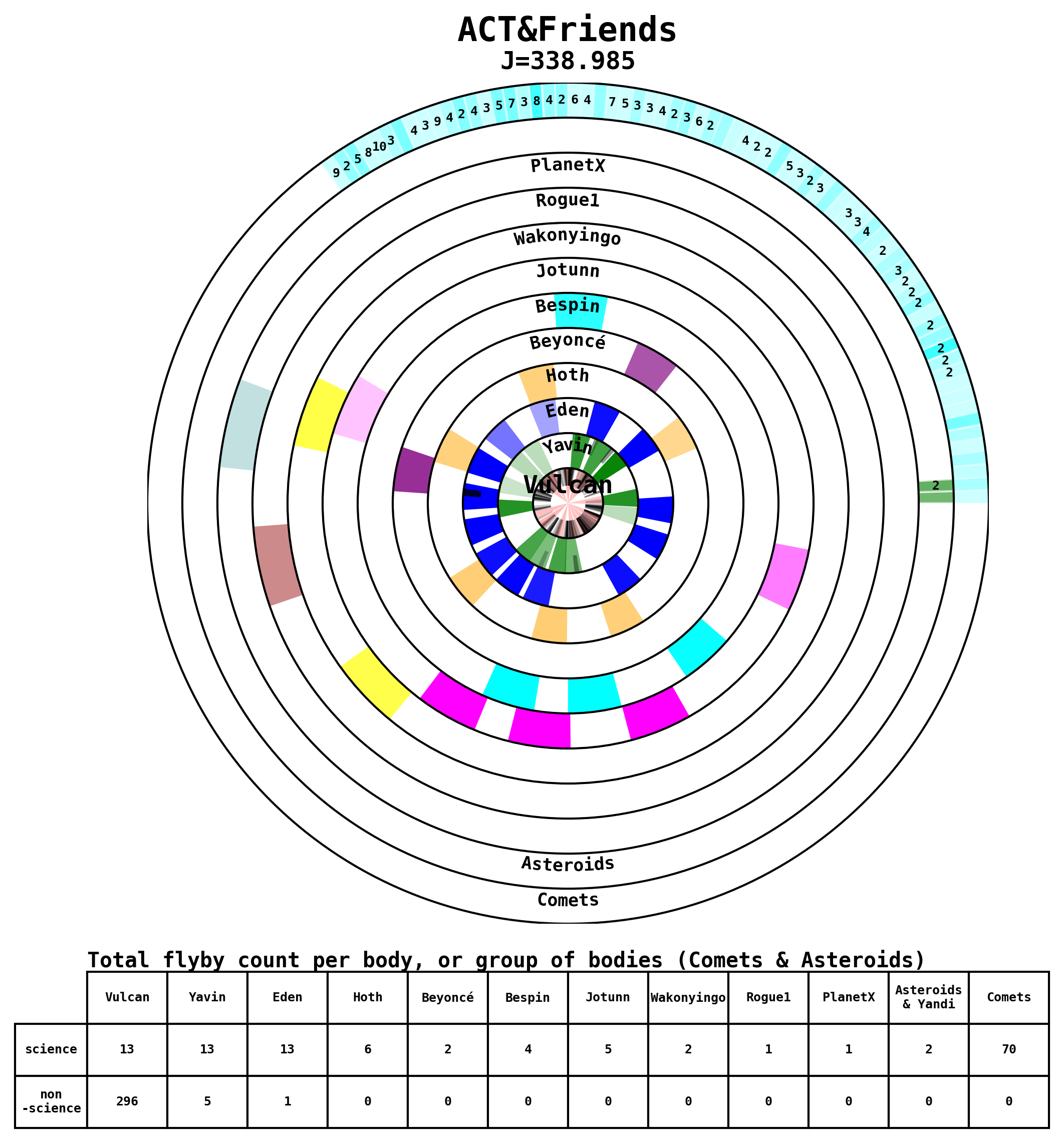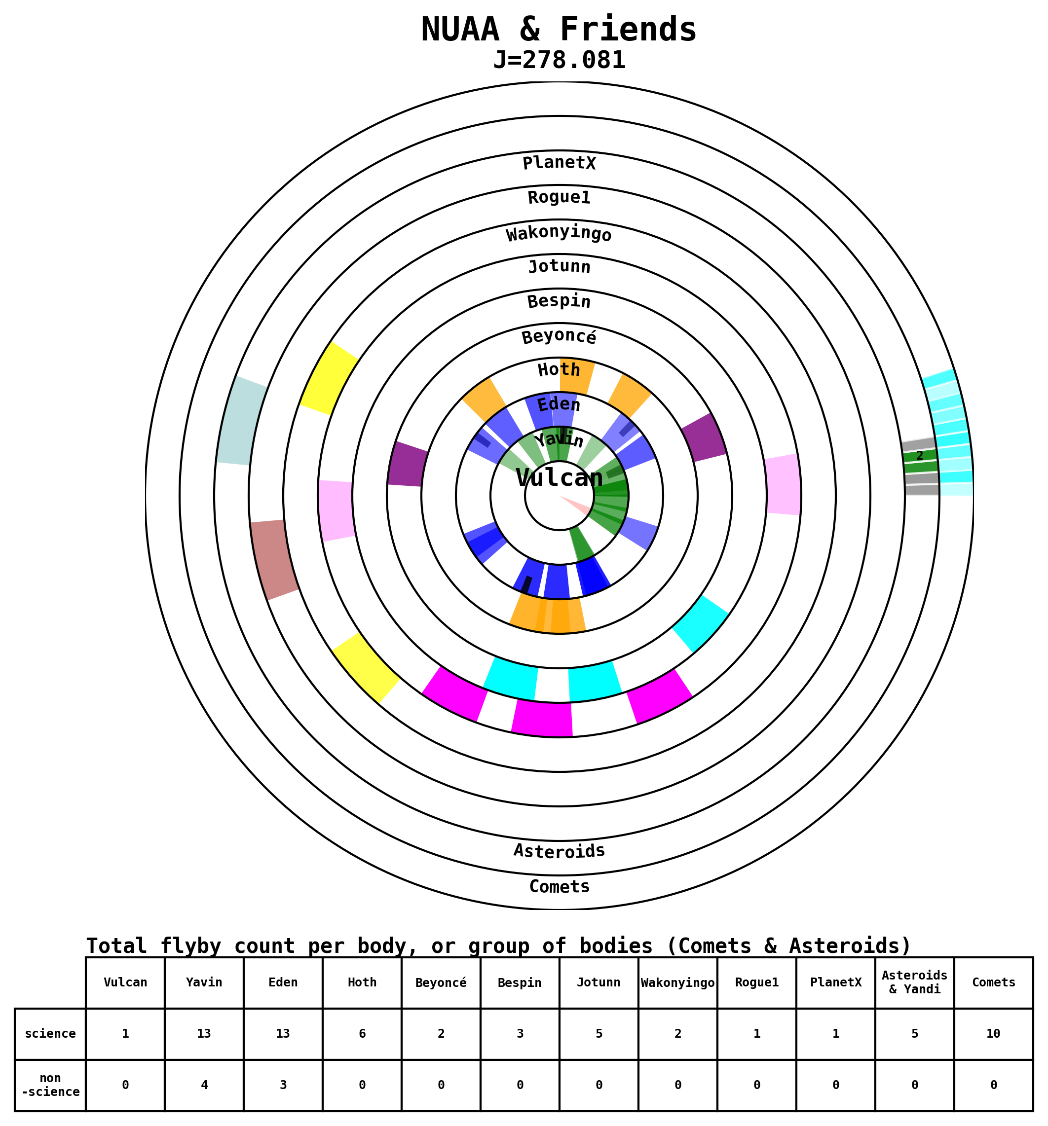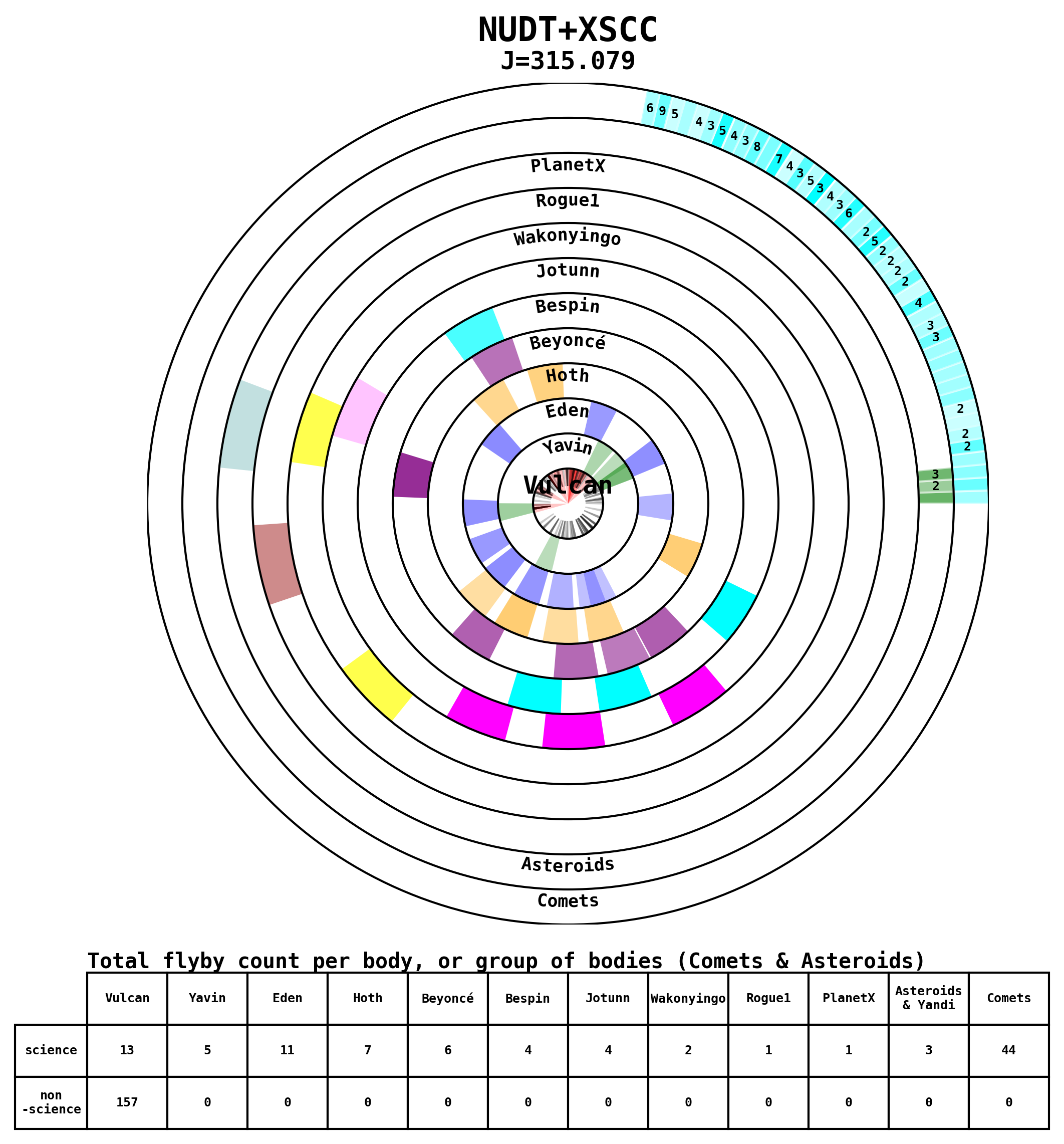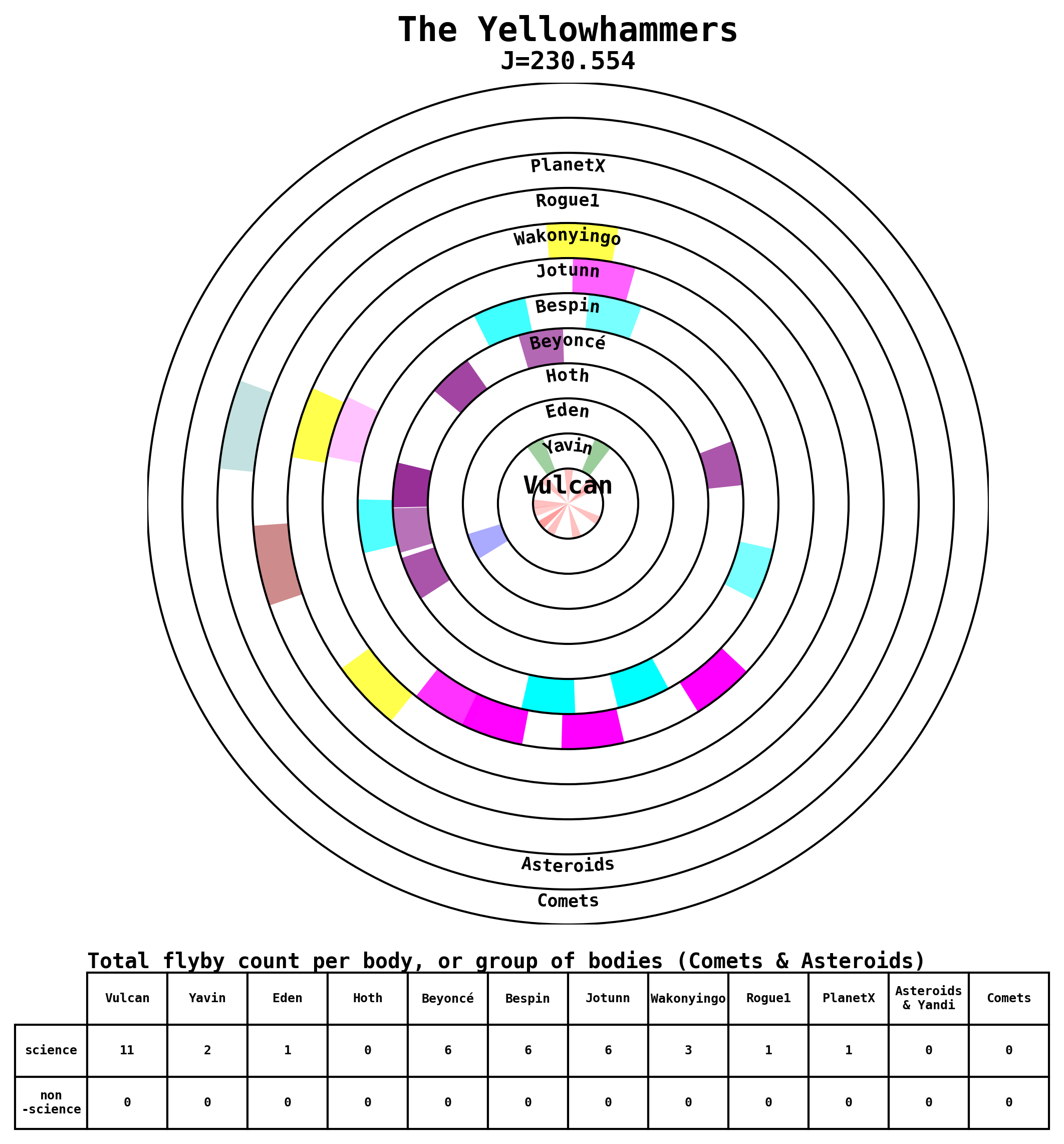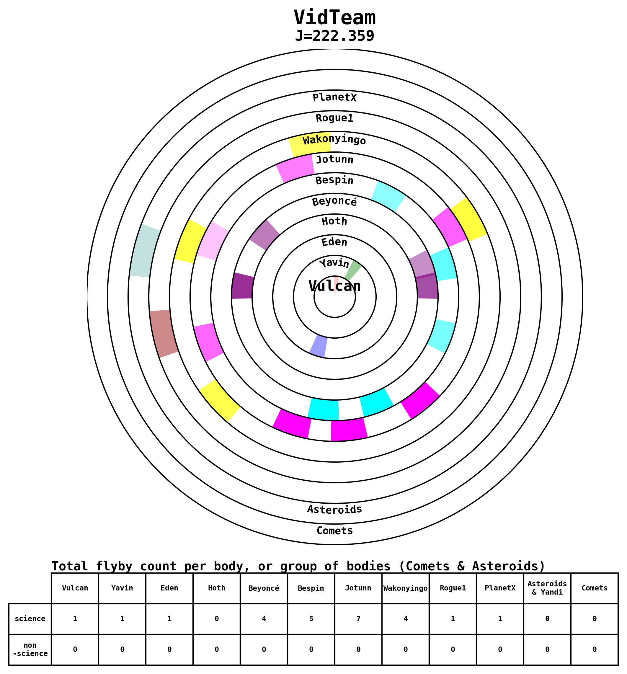 Here are some visual representations of the top 13 (J>200) trajectories submitted to the competition. Similar plots can be generated upon request for other files.